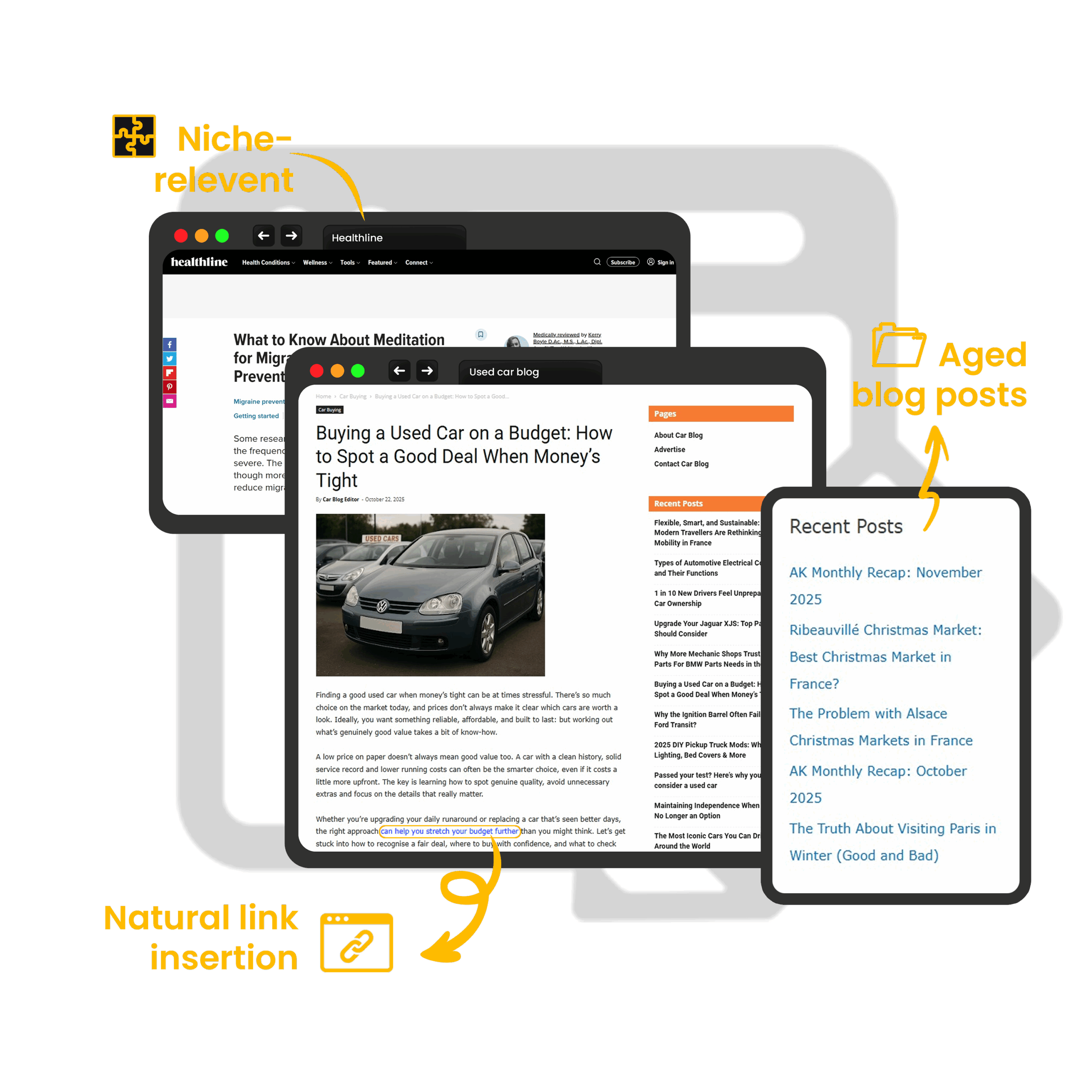 A guest post is a custom article written for another website in your niche, including a backlink to your site.